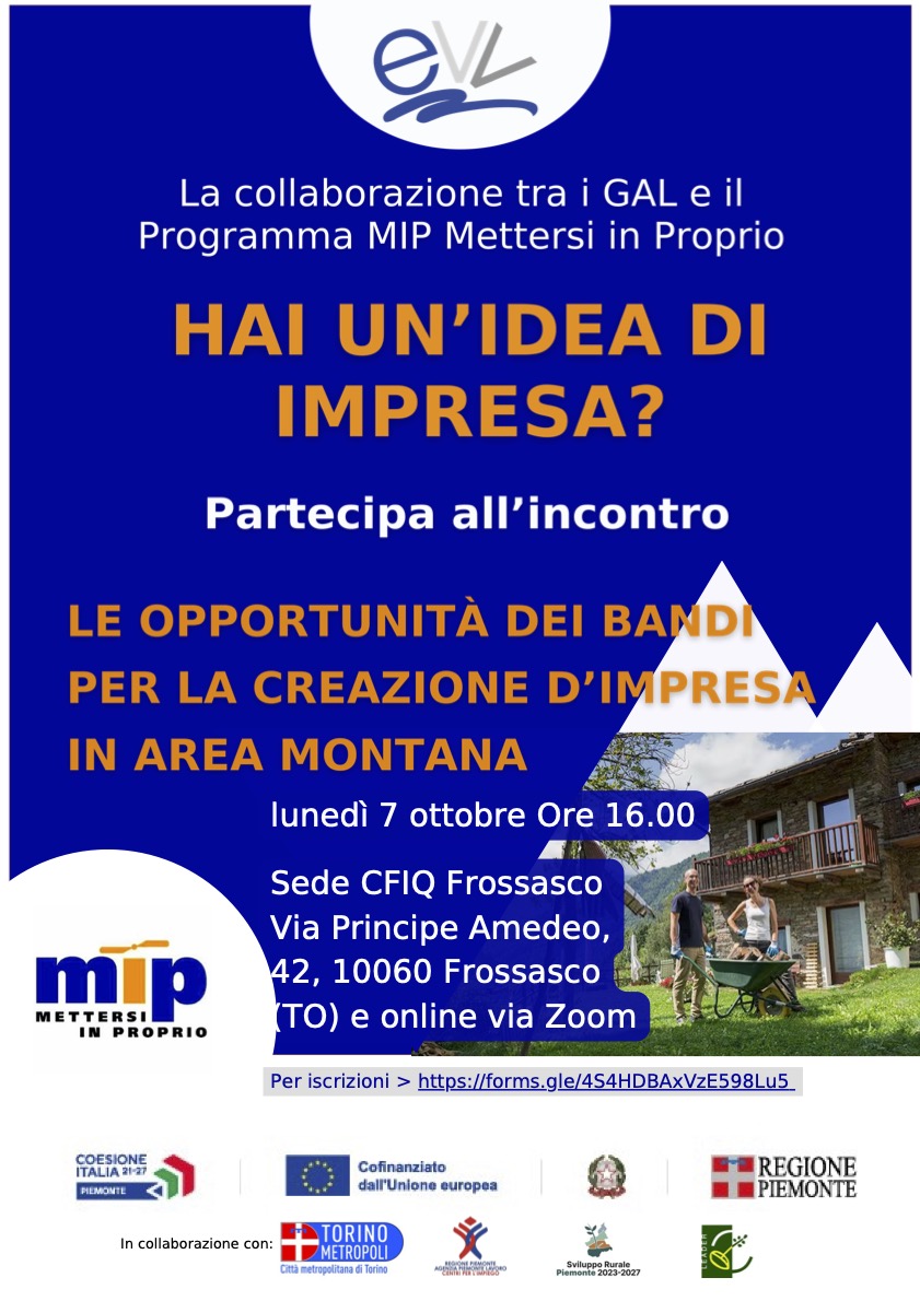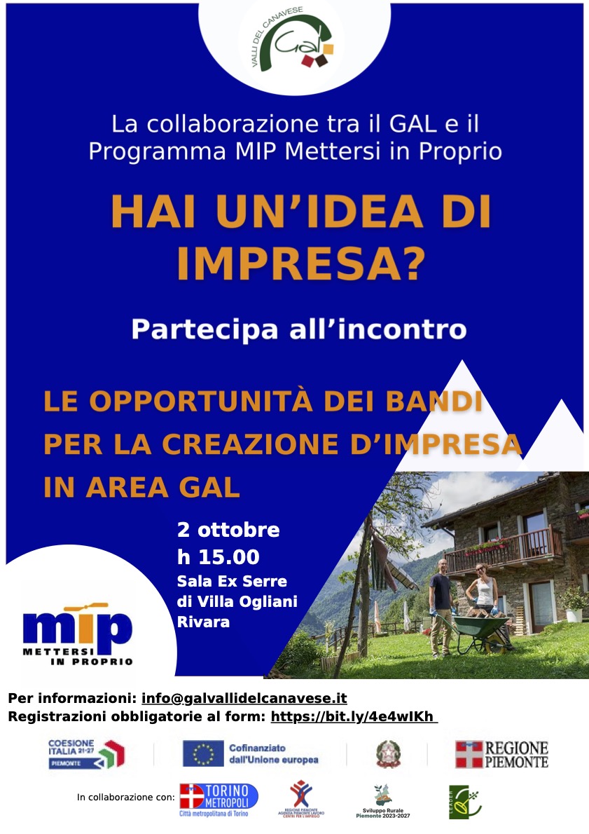 🗓 LUNEDÌ 7 OTTOBRE: Incontro MIP GAL Valli del Canavese