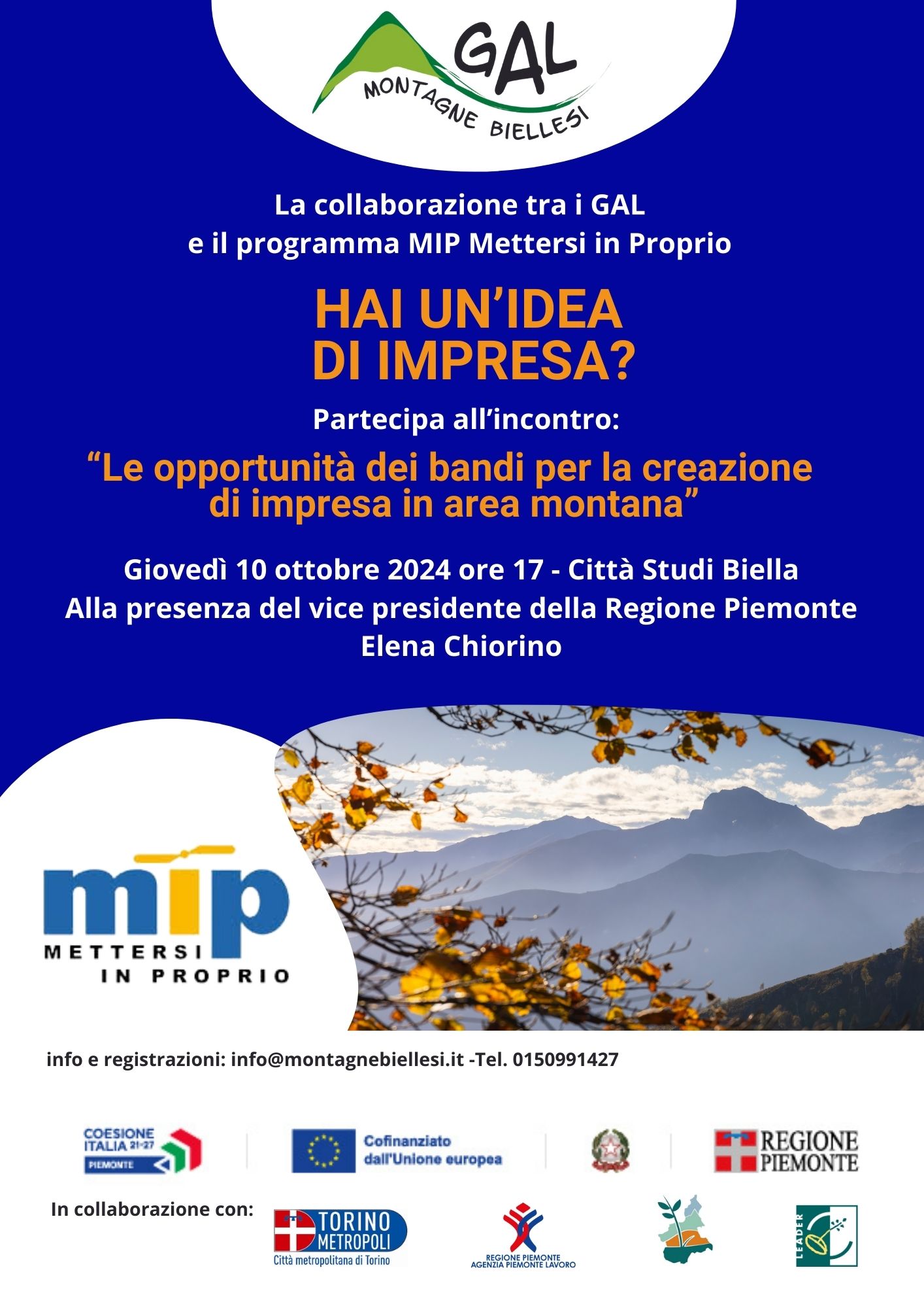 🗓 GIOVEDÌ 10 OTTOBRE: Incontro MIP GAL MONTAGNE BIELLESI