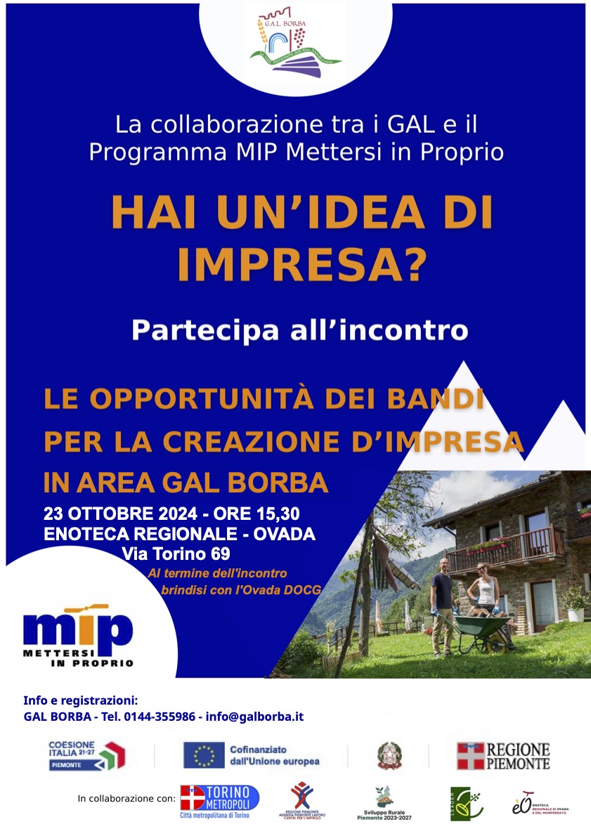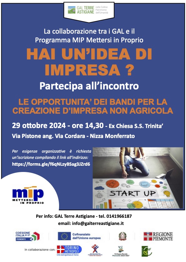 🗓 MARTEDÌ 29 OTTOBRE: Incontro MIP/GAL TERRE ASTIGIANE