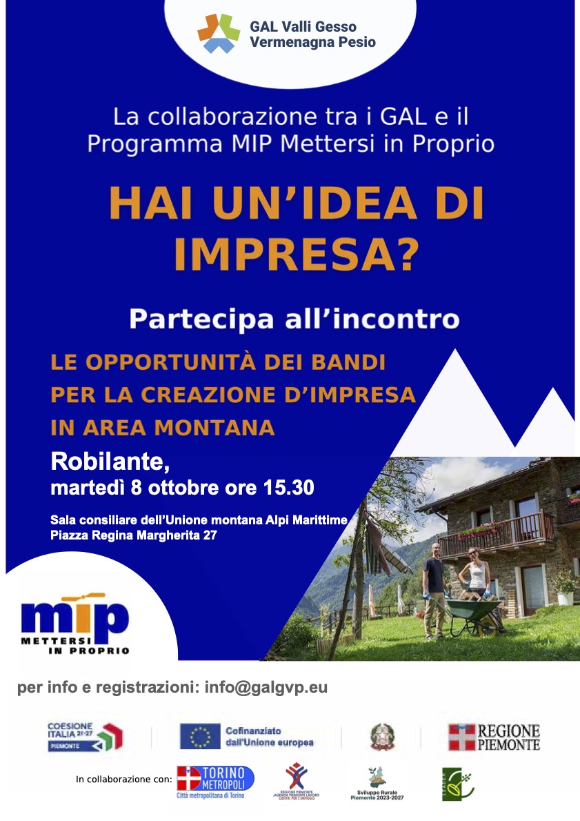 🗓 MARTEDÌ 8 OTTOBRE: Incontro MIP GAL VALLI GESSO VERMENAGNA PESIO